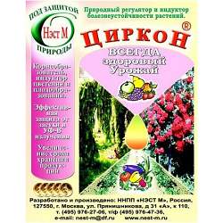 Циркон (1 мл). Иммуномодулятор, корнеобразователь, индуктор цветения — препарат широкого спектра действия обладает сильным фунгицидным и антистрессовым действием. Нормализует гомеостаз (обмен) растений, защищает их от загрязнения тяжелыми металлами. Изготавливается из природного сырья — эхинацеи пурпурной.