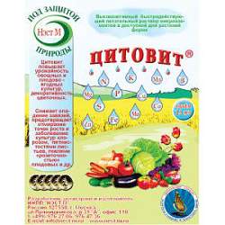 Цитовит (1,5 мл.). Высококонцентрированный сбалансированный комплекс всех жизненно важных макро- и микроэлементов в доступной для растений форме. Он восполняет недостаток необходимых элементов питания и помогает растениям при заболеваниях, вызванных дефицитом микроэлементов. Применяется на всех культурах ( овощные, плодово-ягодные, декоративно-цветочные).