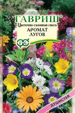 Цветочный газон Аромат лугов. Благоухающий сад одним взмахом руки. Яркая и неприхотливая смесь газонных трав с добавлением ароматных цветов создаст территорию уюта для вашего отдыха, привлечет бабочек, сделает сад любимым местом игр и развлечений для ваших детей. Входящие в состав газона цветочные многолетние и однолетние культуры неприхотливы и засухоустойчивы, подобраны с учетом высоты и времени цветения. Не нуждаются в регулярных поливах и уходе. Выращивают прямым посевом в открытый грунт в апреле — мае. Почву перед посевом обрабатывают, рыхлят, поливают и прикатывают, чтобы сформировать уплотненное семенное ложе. Семена высевают вдоль и поперек участка, присыпают землей и накрывают нетканным материалом (лутрасил) до появления всходов. Для интенсивного роста и обильного цветения необходимо подкармливать 2-3 раза за лето цветочным удобрением. Не скашивать. Рекомендуемая норма высева 2-5 г/м?.