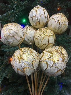 Декоративный шар Сола с лепестками. Необычные шары из натуральных материалов, похожи одновременно на елочные шары и на экзотические плоды. Лепестки с каймой, усыпанной блестками. Станут прекрасным дополнением к новогоднему декору — для украшения венков и гирлянд, композиций из лапника.