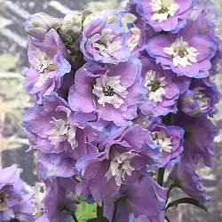 Дельфиниум Cameliard (Камельярд). Высота 100-150 см . Цветки крупные, 6-7 см в диаметре, фиолетовой окраски, полумахровые, неправильные с длинным шпорцем, собраны в кистевидные соцветия. Куст с прямостоячими побегами, с пальчато-рассеченными, темно-зелеными листьями. Цветет обильно и продолжительно, с июня по сентябрь.