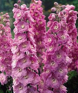 Дельфиниум Delphi's Pink Power (Делфиз Пинк Пауэр). Цветки крупные, махровые, насыщенно-розовые с белым центром.