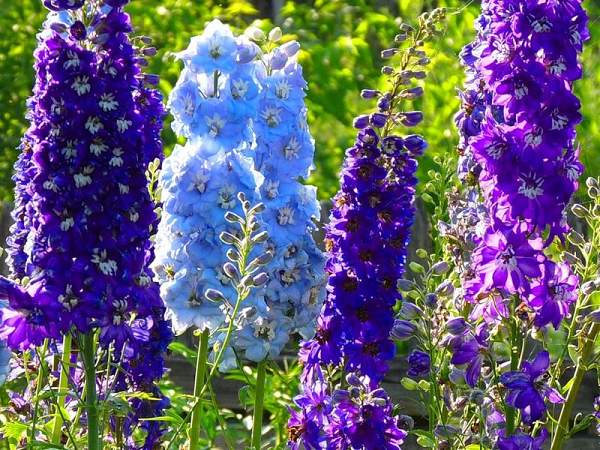 Высокие дельфиниумы хорошо смотрятся в одиночных посадках на газоне, у стен зданий, забора. Хорошо будет выглядеть дельфиниум у беседки, рядом с лавочкой и кустарником. Ярко-голубой дельфиниум подчеркнет окраску хвои голубой ели, а темно-фиолетовые сорта оттенят оригинальность золотистой формы туи. Рядом с ним будут хорошо смотреться любые "ромашки": нивяник, пиретрум, рудбекия, гайлардия и эхинацея.