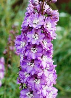 Дельфиниум Eelkje (Эльке). Соцветие из необычных цветков лавандового цвета. По краям лепестков фиолетовые тени. Соцветие смотрится объемно и шикарно. Высота растения 120 см.
