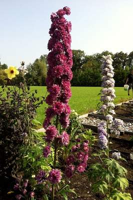 Высокие дельфиниумы хорошо смотрятся в одиночных посадках на газоне, у стен зданий, забора. Хорошо будет выглядеть дельфиниум у беседки, рядом с лавочкой и кустарником. Ярко-голубой дельфиниум подчеркнет окраску хвои голубой ели, а темно-фиолетовые сорта оттенят оригинальность золотистой формы туи. Рядом с ним будут хорошо смотреться любые "ромашки": нивяник, пиретрум, рудбекия, гайлардия и эхинацея.