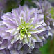 Цветки махровые светло-лиловые, с голубой дымкой и светло-зеленым центром, соцветия крупные, плотные.