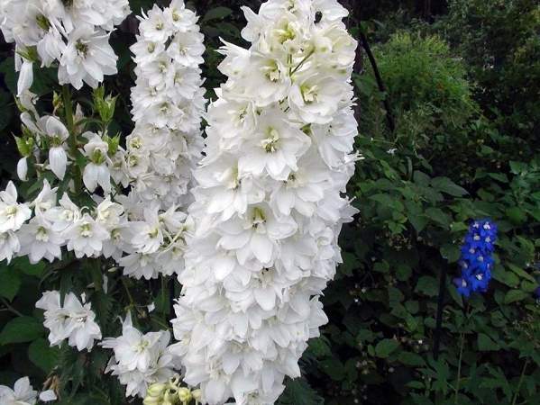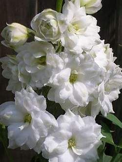 Дельфиниум Magic Pure Fountain White (Мэджик Фаунтейн Пьюр Уайт). Цветки махровые, снежно-белые. Высокие стройные соцветия. Предпочитают супесчаную или суглинистую, богатую перегноем, умеренно влажную почву.
