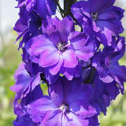 Дельфиниум высокий N.Mill. F1 Pagan Purples (Пейген Пёплз). Цветок махровый, диаметром 7 см, пурпурно-фиолетовый со слабовыраженным белым или фиолетовым глазком. Длина соцветия 90-110 см при общей высоте растений около 180-190 см.
