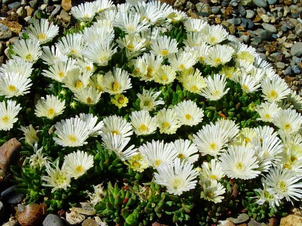 Делосперма Alba (Альба). Компактное растение неприхотливо в уходе и обладает устойчивостью к засухе, но, чтобы создать для него подходящие условия, необходимо перед посадкой организовать хороший дренаж.