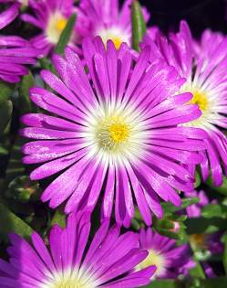 Делосперма Купера (Delosperma cooperi) — низкое растение с разветвленными стеблями, длинными узкими серовато-зелеными листьями и довольно крупными, 3-5 см в диаметре, пурпурными или розовыми цветками, образующее плотный "Розовый ковер", как его и называют. Высокогорный вид, выдерживающий температуры до -23 °-29 С.