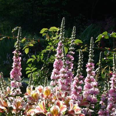 Дербенник иволистный Blush (Блаш). Сорт видный, высокий (до 150 см), с длинными свечевидными соцветиями. Цветки очень красивого светло-розового теплого цвета. Листья продолговато-ланцетные.
