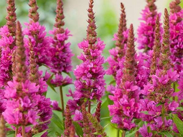 Дербенник Little Robert (Литл Роберт). Высота растения 50 сантиметров, стебли прямостоячие, ровные, нижняя часть хорошо облиственная, верхняя — плотно покрыта мелкими розовыми соцветиями.