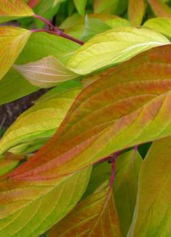 Ярко-желтые листья красиво контрастируют с бордовыми побегами!