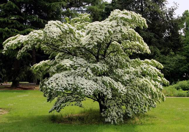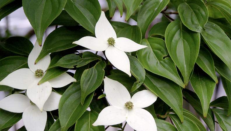 Дерен коуза. Настоящий аристократ и один из самых красивых видов семейства Дереновых на садовом участке. Его китайская разновидность отличается более крупными листьями и плодами. А белые прицветники ярче и крупнее, чем у исходного вида.