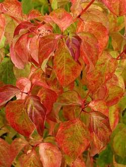 Листья слегка блестящие, осенью лососёво-оранжево-жёлтые. Соцветия маленькие. Цветки белые, цветение в июне. Рекомендуется для посадки группами на тёмном фоне, для создания живых изгородей. Место солнечное или полутенистое. К почве нетребователен. Зона 4 (до -29 ºС). Для поддержания красочного эффекта рекомендуется каждый год или два в начале весны обрезать старые побеги на высоту 30 см от земли, чтобы стимулировать рост новых ярко окрашенных побегов.