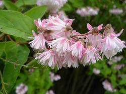 Побеги темно-коричневые, цветки многочисленные белые, внешние лепестки ярко-розовые. Смотрится очень изящно. Это гибридная дейция, которая отличается от дейции шершавой более компактными размерами, она достигает всего 120-150 см. Это делает ее более пригодной для выращивания в климате средней полосы, но все-таки назвать даже и и эту дейцию зимостойкой нельзя. Ее необходимо укрывать. Тогда как для южных регионов этот кустарник (и особенно этот сорт) — просто чудо. Обильное цветение, изящество, необычность — все говорит в ее пользу.