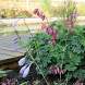 Цветки розовые, сердцевидные, до 2 см в диаметре, с двумя шпорцами. Соцветия представляют собой дугообразные поникающие кисти, возвышающиеся над листвой. Цветет продолжительно — с конца мая до осени.