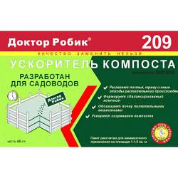 Ежемесячное применение Доктор Робик 209 позволяет получать обогащенный питательными веществами компост в сжатые сроки. Получаемый в результате распада сбалансированный компост является идеальным средством для подкормки и пересадки растений. Простой в использовании Доктор Робик 209 не содержит едких веществ, безвреден для окружающей среды.