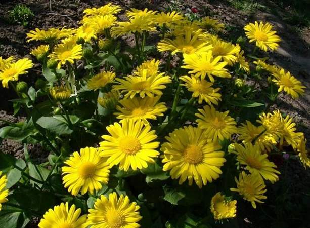 Дороникум восточный. Травянистое растение 40-50 см высотой. Корзинки одиночные 3-5 см в диаметре, на длинных цветоносах. Язычковые цветки желтые, трубчатые — золотисто-желтые. Цветет с середины мая 30-40 дней. Культура зимостойкая, светолюбивая, но для получения более крупных соцветий и продолжительного цветения растения высаживают в полузатененных местах.
