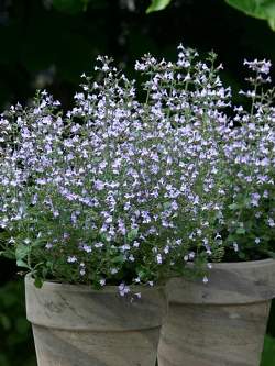 Душевик котовниковый Marvelette Blue (Марвелетте блю). Душевик (другие названия — каламинта, душевник, горная мята) — многолетнее ароматное (что следует и из названия) растение высотой от 20 до 60 см. Образует хорошо разветвленные кустики, цветущие практически весь сезон с июня до октября и похожие на облачка из светло-розовых, белых или сиреневых мелких цветочков.