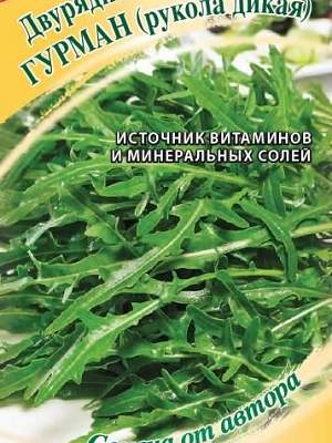 Двурядник тонколистный (Рукола дикая) Рокет. Скороспелый сорт. Рекомендуется для приготовления салатов, в качестве гарнира к мясным, рыбным блюдам, как приправу добавляют в супы, мелко нарезанные листья применяют в приготовлении бутербродов. В листьях руколы содержатся разнообразные витамины, особенно они богаты аскорбиновой кислотой (витамин C), а также минеральные соединения. Высота розетки 20 см. Лист сильнорассеченный. Растение неприхотливо. Предназначено для выращивания в открытом грунте, под пленочными укрытиями, в качестве горшечной культуры на подоконнике.
