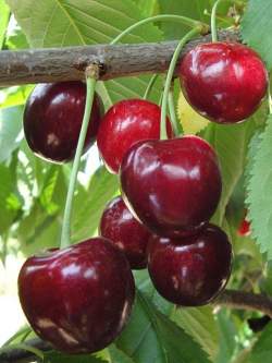Дюк Чудо-вишня. Дерево со средней высотой и в меру густой кроной, округлой по форме. Побеги у вишни прямые, гладкие и покрыты коричневой корой темного оттенка. Спелые ягоды вишни Чудо обладают крупными размерами, каждая из них по весу может достигать 10 г. Форма у плодов плоскоокруглая, цвет темно-красный. Ягоды покрыты плотной блестящей кожицей, сочная мякоть обладает выраженным черешневым ароматом и сладким вкусом с легкой кислинкой. Дегустационная оценка плодов составляет около 5 баллов, ягоды считаются десертными.