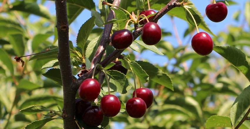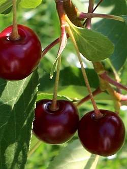 Дюк Надежда. Среднеспелый урожайный сорт с хорошей засухо и морозоустойчивостью. Гибрид обладает иммунитетом к наиболее распространенным заболеваниям вишни и черешни и нуждается в элементарном уходе. Цветение протекает в ранний срок, сорт самобесплодный. Ягоды крупные, округлой формы, слегка сплюснутые по бокам. При размере плода 2,3-2,5 см его масса составляет 5,7-5,9 г. Кожица плотная, окрашена в темно-красный цвет. Оценка вкуса по результатам дегустации — 4,5 балла. Ягода сладкая, с небольшой кислинкой, терпкость отсутствует.