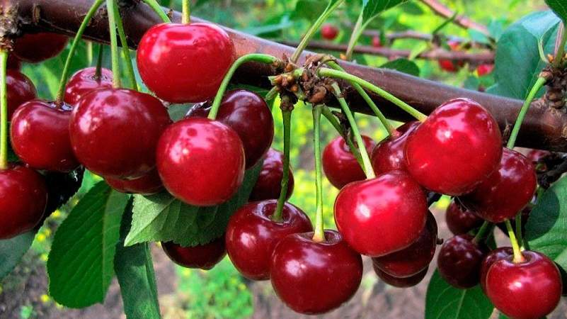 Дюк Саратовская малышка. Растет в виде средне-раскидистого деревца с густой шаровидной кроной. После созревания образуется красивая крупная вишня, достигает в среднем 5 г, но при хорошей агротехнике и благоприятных погодных условиях может набрать 7-8 г. Внешний вид плодов оценен в 5 баллов. Одномерные ягоды округлые, со стороны плодоножки немного приплюснуты, с небольшим углублением. Ягода содержит много сока, ее кисло-сладкий десертный вкус оценен в 4,4 балла.
