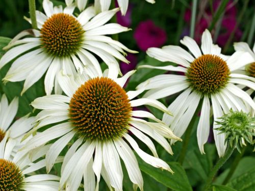 Эхинацея Baby Swan (Бейби Свон). Низкорослая версия сорта «White Swan», образует очень компактный хорошо ветвящийся кустик. Цветки многочисленные, диаметром 8 см, белые с зеленовато-коричневым конусом, листья тёмно-зелёные. Зацветает раньше, чем другие сорта эхинацеи пурпурной. Сорт имеет награды. Цветет с июля по сентябрь. Садоводами ценится за устойчивость, долговечность и эффектное цветение.