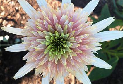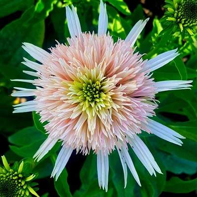 Эхинацея Cherry Fluff (Черри Флафф). Превосходная новинка в линии карликовых эхинацей. Высота 45 см, ширина 35 см. Очень нежной лаймово-розовой окраски. Растет быстро. Очень активно и обильно цветет.