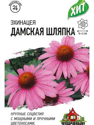 Многолетнее травянистое растение высотой 80-100 см. Отличается крупными эффектными цветками. Листья овально-узкие, опушенные, зубчатые, с прожилками, зеленого цвета, иногда с пурпурным оттенком у основания. Цветы до 12 см в диаметре с лучевым расположением лепестков и шишковидной выступающей "щетинистой" сердцевиной появляются на пряморастущих жестких стеблях.