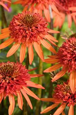 Эхинацея Irresistible. Один из самых красивых сортов с цветками помпонного типа. Цветки диаметром 8 см, махровые, ароматные, прекрасно подходят для срезки, вначале медного цвета, вскоре становятся кораллово-розовыми с более тёмно-розовым помпоном.