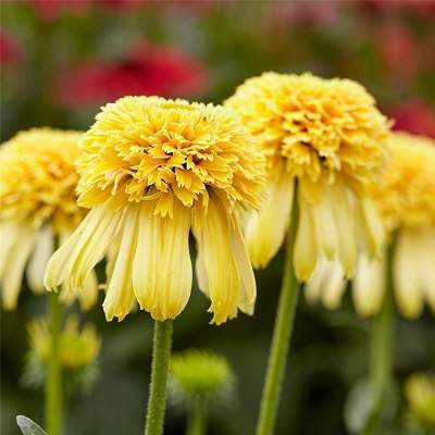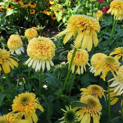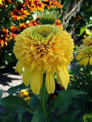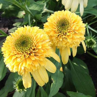 Эхинацея Lemon Drop (Лемон Дроп). Новый крупноцветковый, еще более махровый сорт эхинацеи нежного лимонно-жёлтого цвета с зеленым центром. Цветет все лето. Стебли вертикальные, прочные, ветвящиеся, цветение обильное и длительное, с июля до конца сезона. Предпочитает солнце.