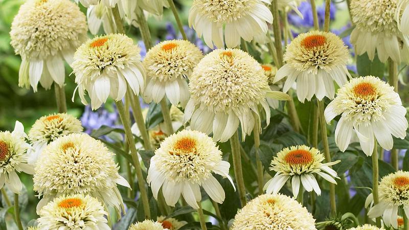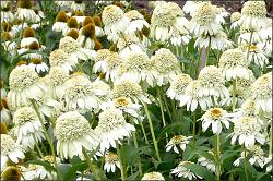 Эхинацея Milkshake (Милкшейк). Многолетнее травянистое растение высотой 80-100 см. Отличается крупными эффектными махровыми цветками. Листья овально-узкие, опушенные, зубчатые, с прожилками, зеленого цвета, иногда с пурпурным оттенком у основания. Цветы до 12 см в диаметре с лучевым расположением лепестков и шишковидной выступающей "щетинистой" сердцевиной появляются на пряморастущих жестких стеблях.
