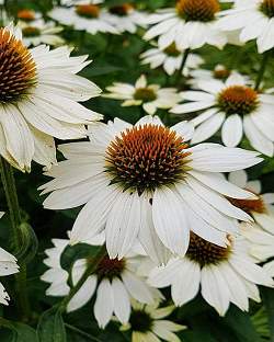 Эхинацея Primadonna (Примадонна). Многолетнее травянистое растение высотой 80-100 см. Отличается крупными эффектными махровыми цветками. Листья овально-узкие, опушенные, зубчатые, с прожилками, зеленого цвета, иногда с пурпурным оттенком у основания. Цветы до 12 см в диаметре с лучевым расположением лепестков и шишковидной выступающей "щетинистой" сердцевиной появляются на пряморастущих жестких стеблях.
