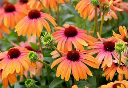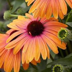 Эхинацея Rainbow Marcella (Рейнбоу Марселла). Лепестки оранжевые с розовым основанием. Сорт необычайно вынослив и красив. Высота растения 80 см.