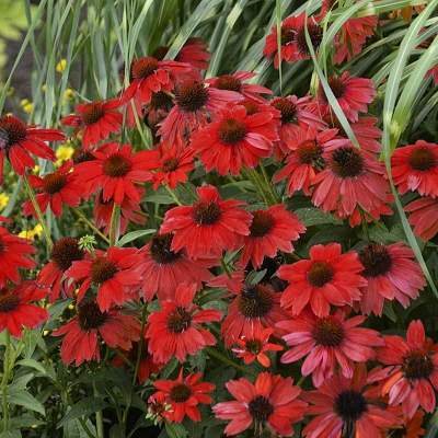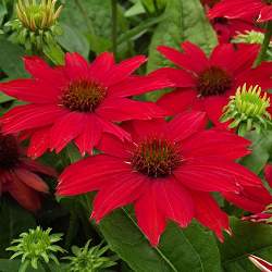 Эхинацея Salsa Red (Сальса Рэд). Цветоносы высотой 55-60 см, хорошо разветвлённые, крепкие, с большим количеством бутонов. Цветки большие, простые, с ярко-красными перекрывающимися лепестками и большим коричневым конусом. Листва тёмно-зелёная. Сорт отлично подходит для срезки.