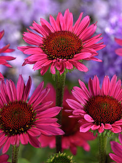 Эхинацея пурпурная 'Vintage Wine'. Крупные цветки с укороченными темно-розовыми лепестками и красно-оранжевым очень крупным центром. Хорошее растение для срезки.