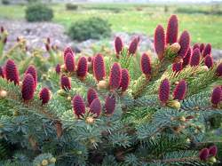 Ель биколор. Редкое хвойное растение, которое практически не встречается в частных садах, только в ботанических. Ель Алькокка или двуцветная (Picea bicolor, alcoquiana) получила свое название за хвою, имеющую сверху зеленую, а снизу – голубую окраску. Иголки длинные (20 мм). Молодые шишки зеленые, цветущие - ярко-малиновые.