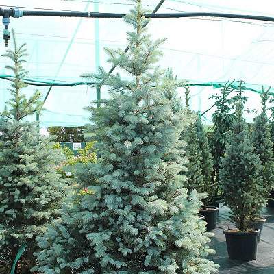 Ель Blue Diamond (Блу Даймонд). Молодой морозостойкий вид голубой ели. Выведен в 1990 г. в США. Умеренно растущий. В год вырастает до 12 см. Взрослое дерево живет несколько сотен лет, в высоту вырастает до 7 м, ширина достигает 3 м.
