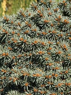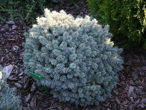 Ель Blue Pearl (Блю Перл). Название переводится как "голубая жемчужина", и оно не случайно. Дело в том, что само дерево чем-то напоминает собою жемчужину: оно имеет крону необычной круглой формы с красивой голубой хвоей. Крона отличается плотностью; она достаточно ровная и имеет правильную форму. Побеги и ветки растут в разных направлениях, создавая сферообразную крону.