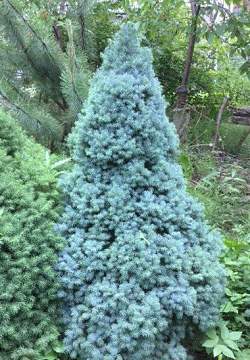 Ель Conica Blue (Коника Блу). Очень красивая и менее прихотливая разновидность ели Коника. Иголки голубые. Прирост около 7 см. в год. К 10 годам достигает примерно 0,7 м в высоту. Предпочитает солнце или полутень. Особых почвенных требований нет. Рекомендуется для небольших садов, каменных садов, для выращивания в контейнерах.
