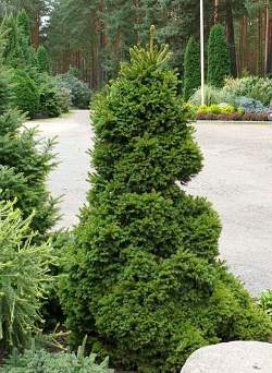 Ель Dundanga (Дунданга). Карликовая компактная густая ель. Вначале форма сферическая, затем ширококоническая или столбчатая. К 10-ти годам высота 50 см и диаметр 35 см. Взрослая ель высотой 150-170 см. Хвоя маленькая, тонкая, ярко-зелёная. Рекомендуется для небольших садов, альпинариев и выращивания в контейнерах. Место солнечное. Почва умеренно влажная, дренированная. Зона 3 (до -34 °С).