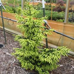 Сорт с конической кроной и раскидистыми боковыми ветвями. Отличается светло-золотистой хвоей на молодых побегах. В начале лета она становится зеленовато-желтой, жёсткой, блестящей, короткой, 0,4-0,8 см. Шишки цилиндрические или яйцевидные, 5-8 см длиной, 2-3 см диаметром, перед созреванием фиолетовые, затем коричневые. Светолюбива, выносит небольшое затенение. Предпочитает свежие и влажные, богатые питательными веществами, кислые или щелочные почвы. Хорошо переносит стрижку. Хороша для японских садиков и патио.