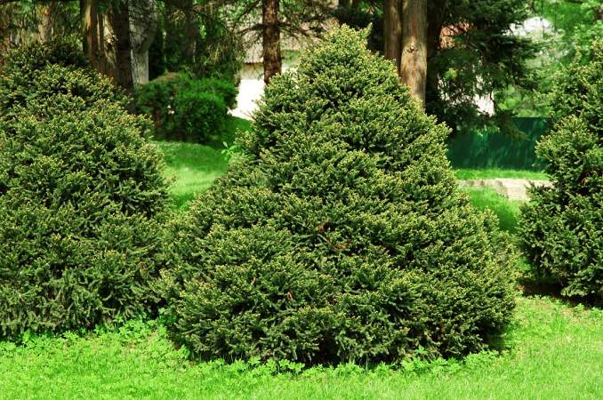 Ель обыкновенная Ohlendorfii (Олендорфри). Вечнозеленый крупный кустарник с широкоокруглой, позднее ширококонической кроной и раскидистыми, слегка приподнятыми густорасположенными асимметричными ветвями.