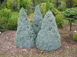 Представляет собой медленнорастущее дерево с компактной правильной конической кроной. Годовой прирост до 4 см в год. Побеги многочисленные, короткие, светло-коричневого цвета. Хвоя игольчатая, очень мягкая, короткая, 6-10 мм в длину, ярко-синяя, зимой не меняет свой цвет. Молодой прирост серебристо-голубого цвета. Предпочитает солнечное местоположение, влажные, слабокислые, хорошо дренированные почвы. В отличие от других сортов карликовых декоративных елей, этот менее всего подвержен весенним ожогам.