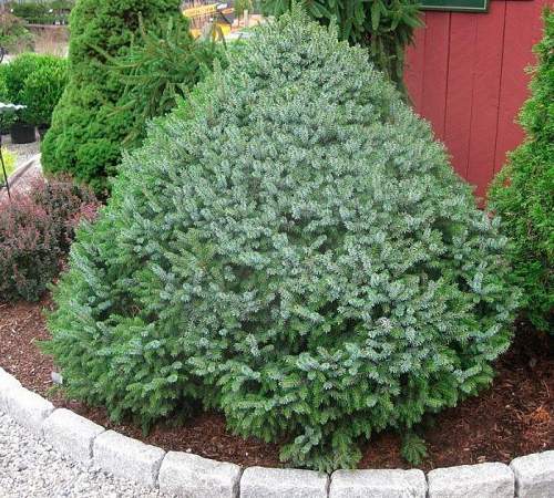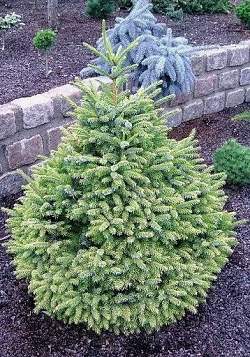 Ель сербская Nana (Нана). Очень ценный сорт — неприхотливый, никогда не горит, не болеет. Подходит для миниатюрных садов, поскольку отлично сохраняет форму в течение десятков лет.
