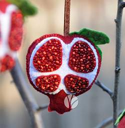 Елочная игрушка "Гранат" выполнена из фетра и украшена бисером. Отличный подарок близким и родным на новогодние праздники.