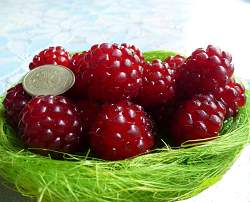 Ежемалина Red Diamond (Ред Даймонд). Начать стоит с того, что эта новинка получила дегустационную оценку 5 баллов из 5 возможных. Ягоды ярко-красные, в гроздьях по 8-16 шт., созревают в ранние сроки (вторая половина июля). Вес ягоды до 12 г. Вкус отличный, сладкий с вишневым привкусом. При поспевании плоды не осыпаются, и не разламываются при снятии.