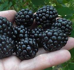 Ежевика Jumbo (Джамбо, Слоненок). Растёт компактно, но даже на небольшой площади даёт хорошие урожаи благодаря очень крупным плодам на многоягодных кистях. Вес одной ягоды может достигать 30 г. Ягоды плотные, костянки мелкие и мягкие, цвет плодов — черный с глянцем.